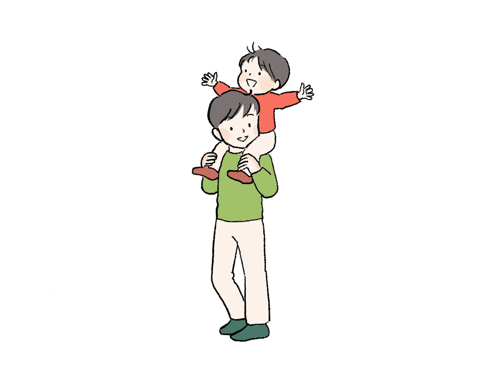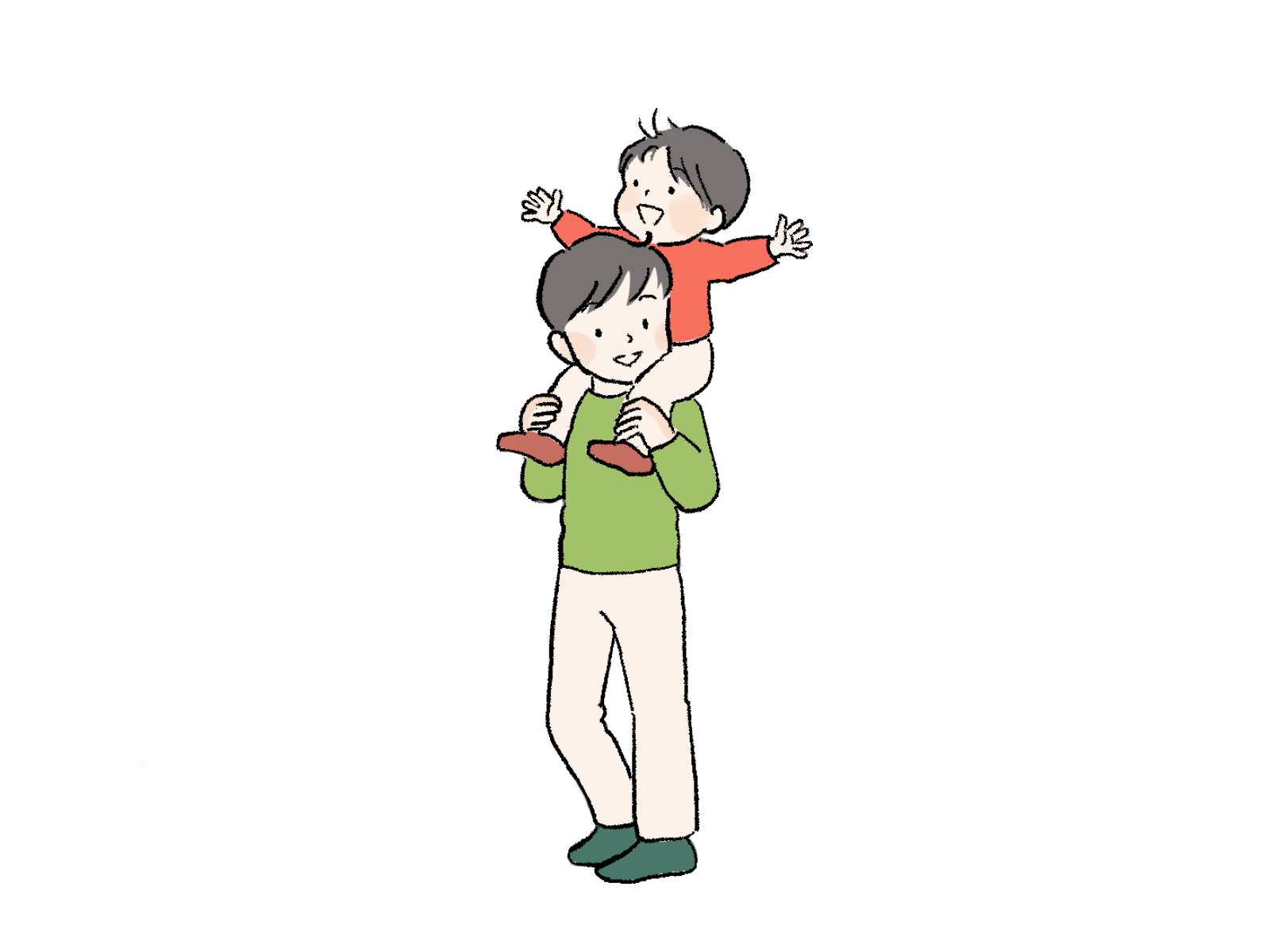 肩車をする親子のイラスト 動作 2022.12.122023.11.29 jpgを保存 pngを保存 お父さんに肩車をしてもらい喜んでいる子ども。親子のイラストです さしえや 肩車をして散歩。楽しいでしょうね。
