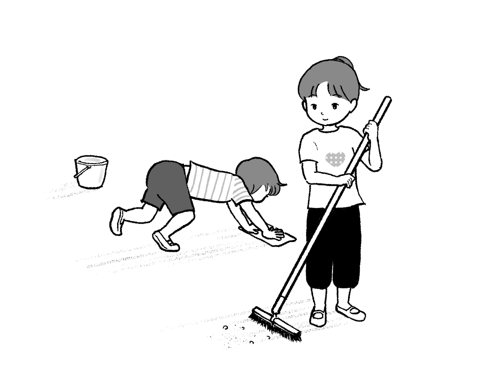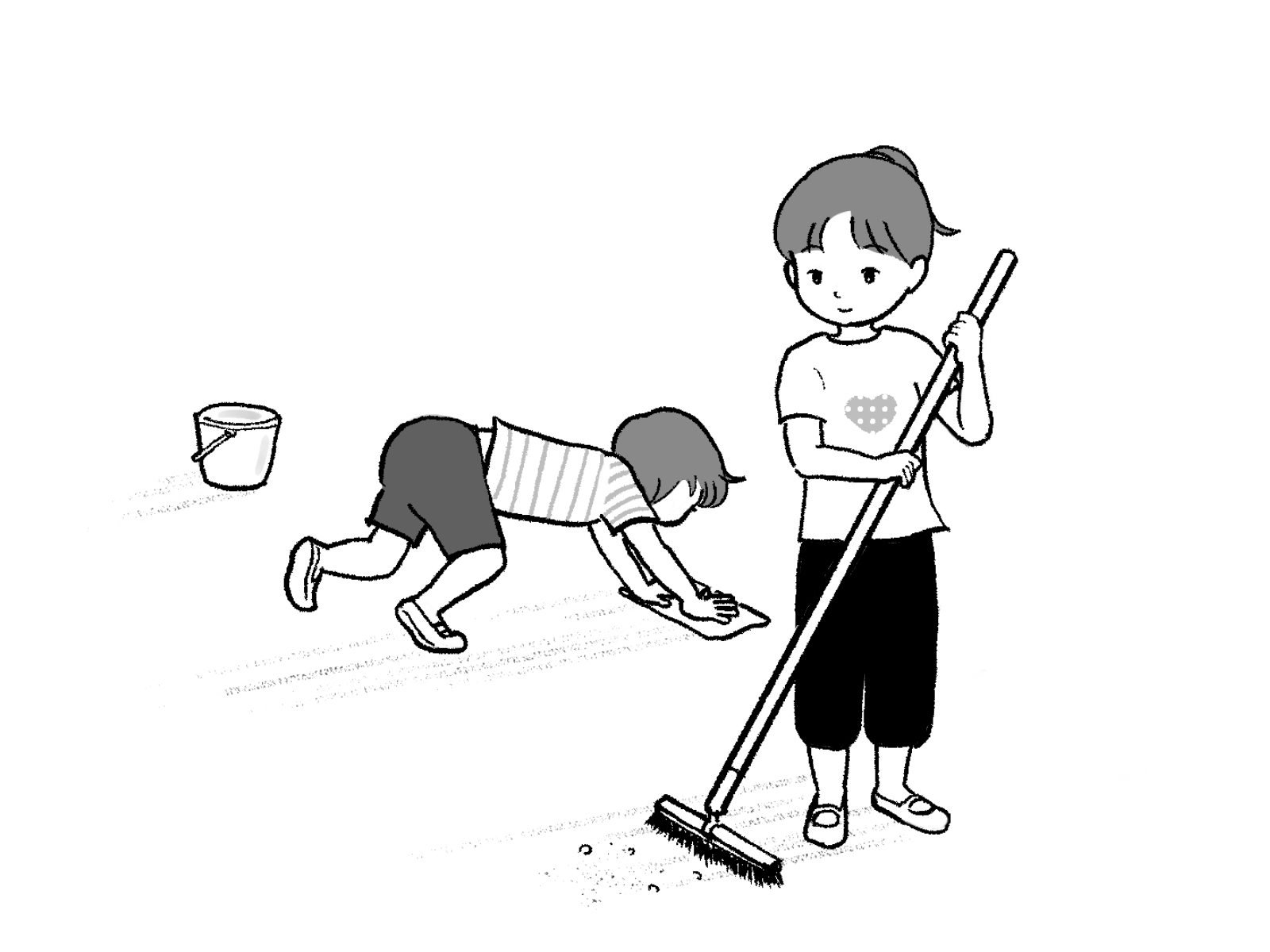 掃除をする子どもたちのイラスト|モノクロ モノクロ 2023.05.03 jpgをダウンロード pngをダウンロード 教室の掃除をする子どもたち。モノクロに仕上げました。 さしえや シマシマTシャツの子のように、教室や廊下を雑巾掛けしましたね。懐かしいです。 関連のイラスト ゴミ拾いをする子どもたちのイラスト今日は地球の日(アースデイ)。 環境を守るためにできることの一つ、ゴミ拾いのイラストを描きました。