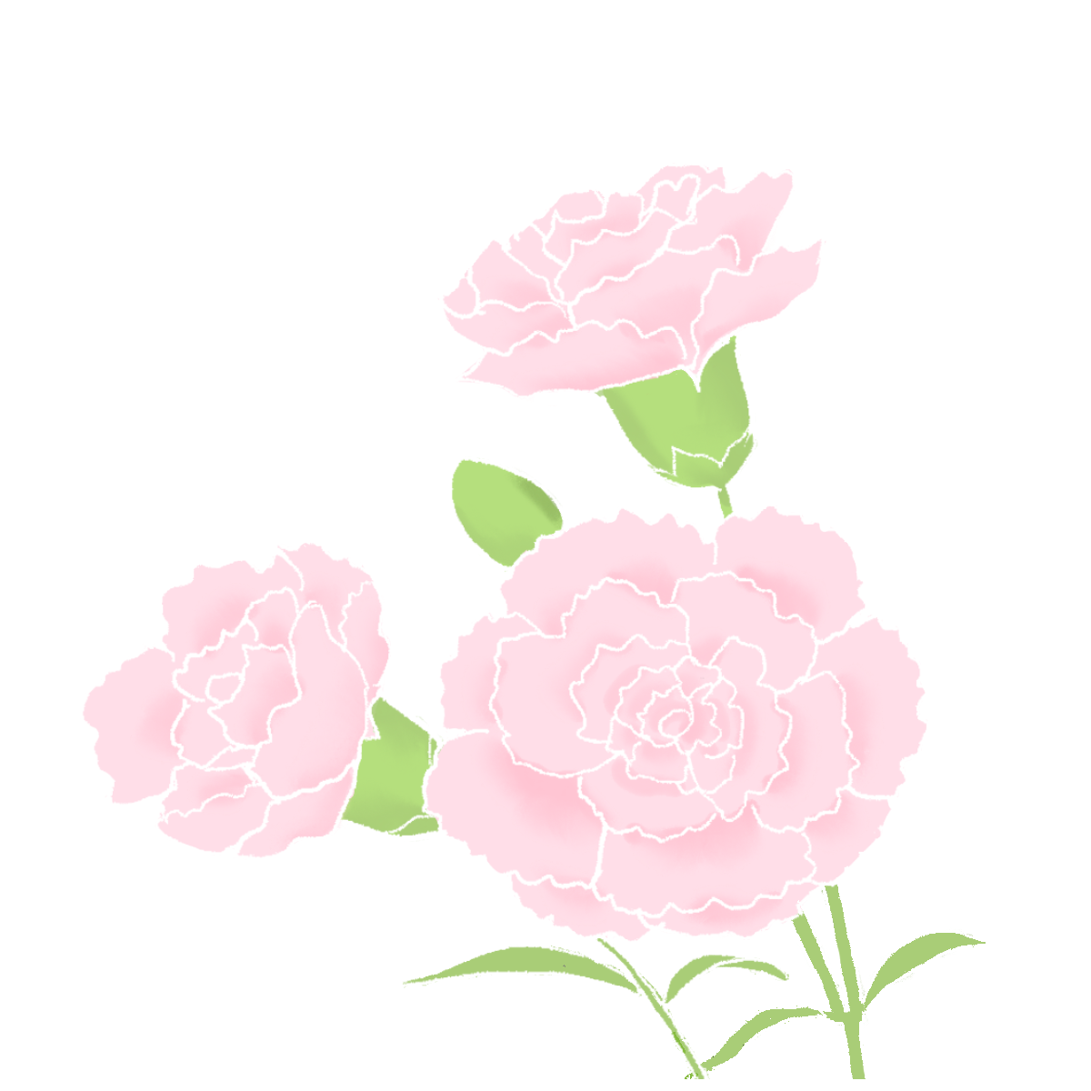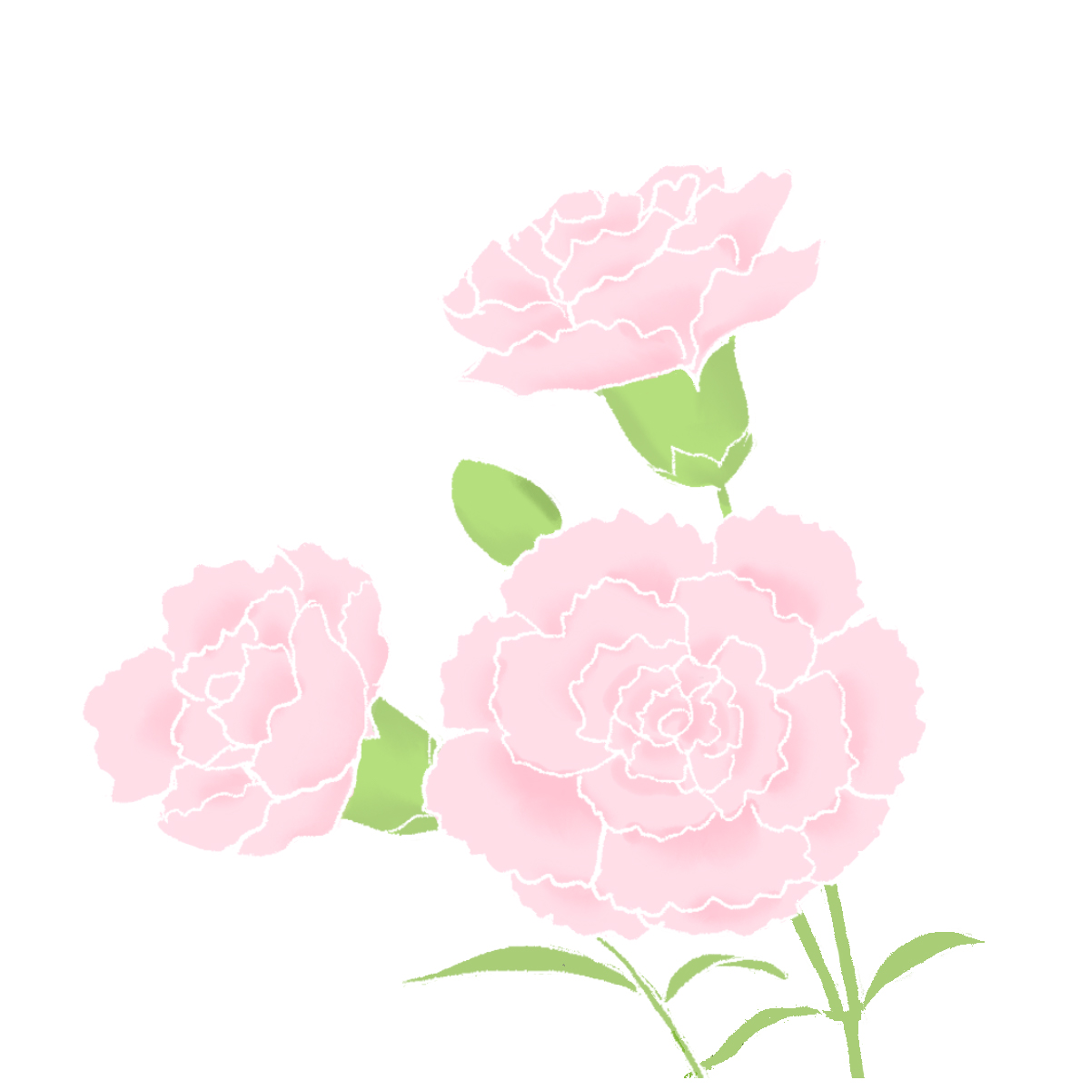 カーネーションのイラスト1(薄いピンク) 春 2023.04.042023.11.30 jpgを保存 pngを保存 線画・カーネーションのイラスト jpgを保存 pngを保存 昨日「カーネーションとお母さんのイラスト」を投稿しました。今日はカーネーションだけの投稿です。これから月末にかけて、このカーネーションの色を変えたものを何度か投稿したいと考えています。線画もありますので、ぜひご利用ください。