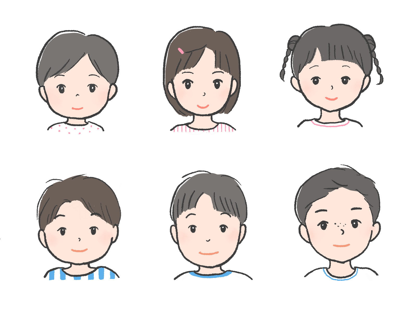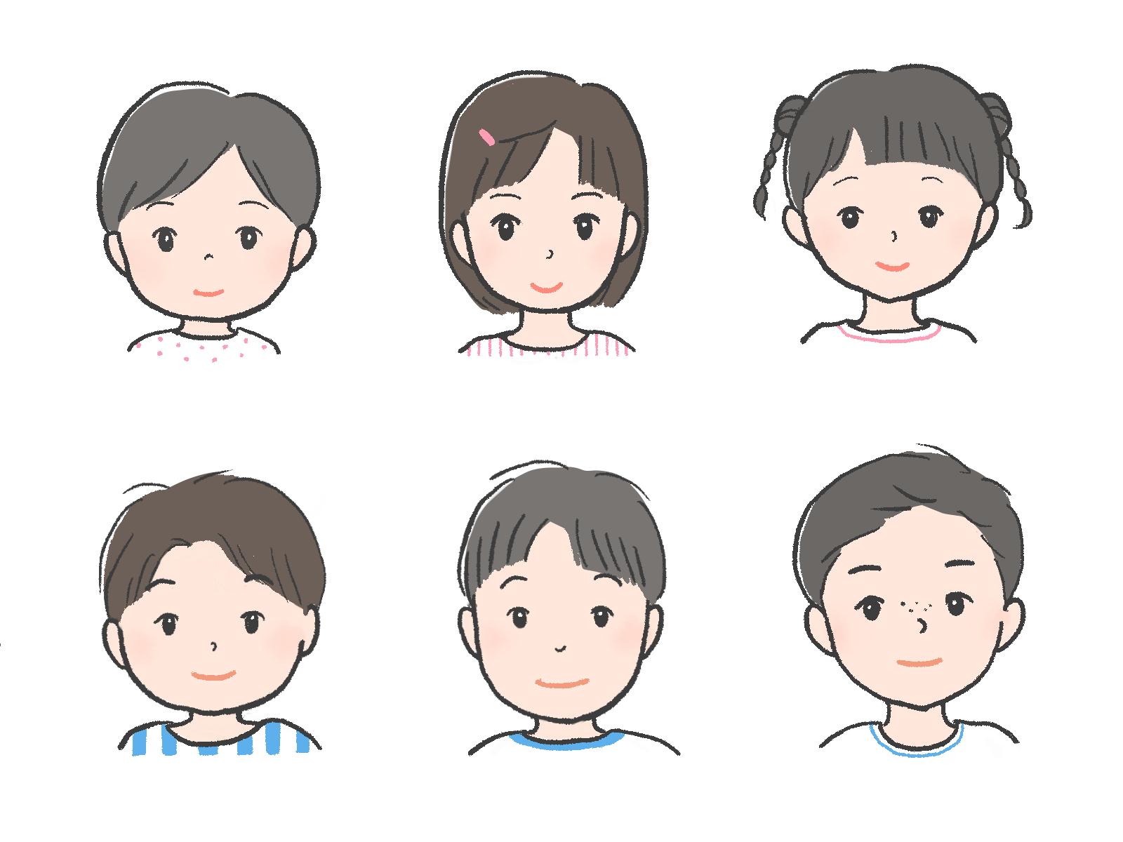 男の子と女の子3人ずつ描きました。