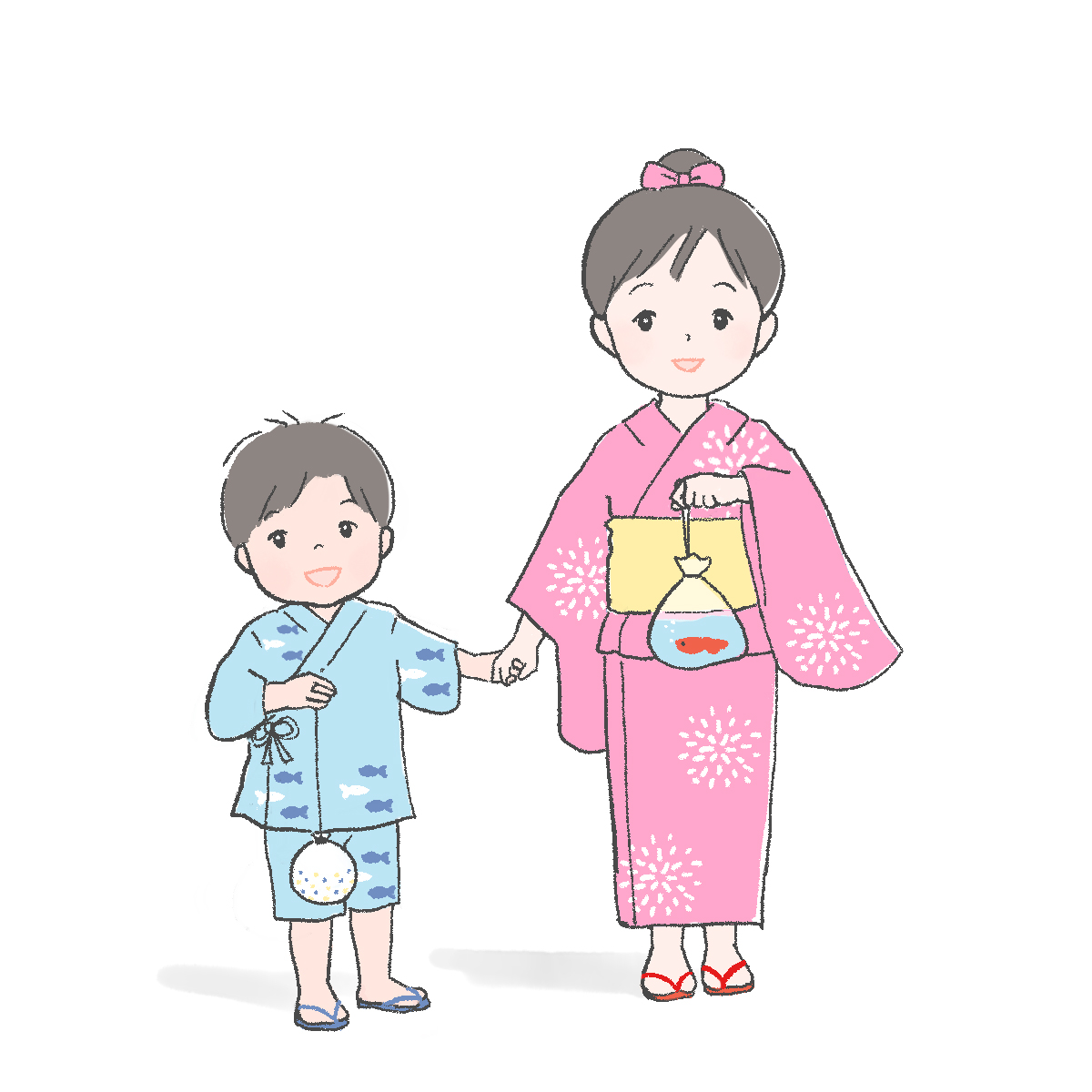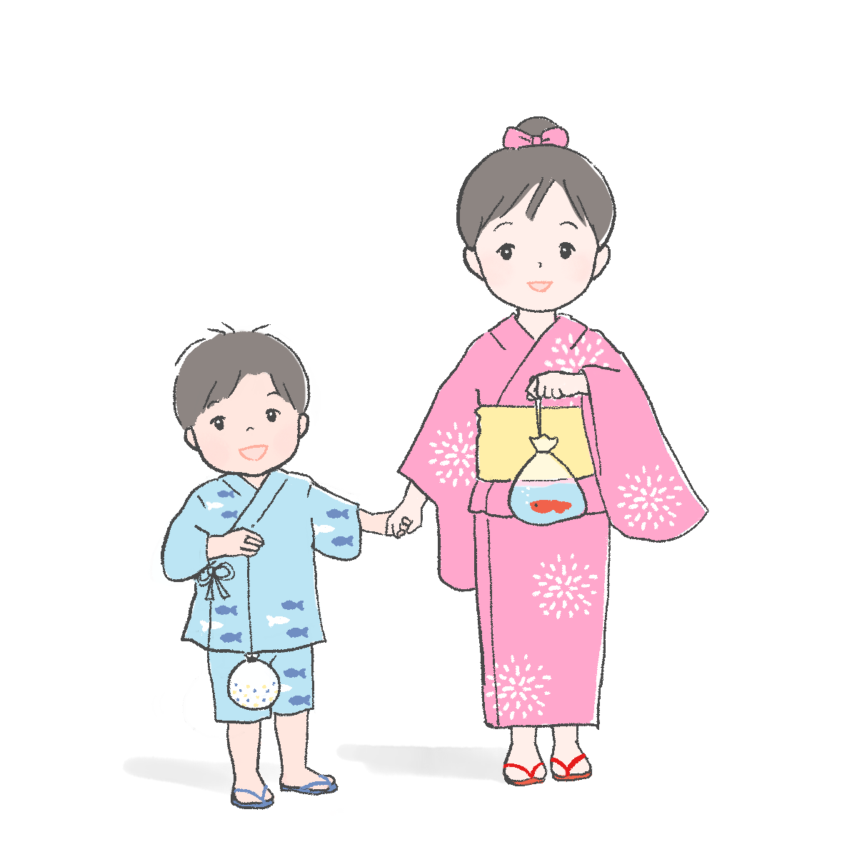 浴衣を着た子どもたちのイラスト 生活 2023.05.16 jpgをダウンロード pngをダウンロード 浴衣と甚兵衛を着た姉弟のイラストです。それぞれ祭り土産を持ち、嬉しそうにしている姿を描きました。 さしえや 小さい子どもの甚平姿、かわいいなぁと思います。イラストはお祭りの案内チラシ、ブログなどにも。