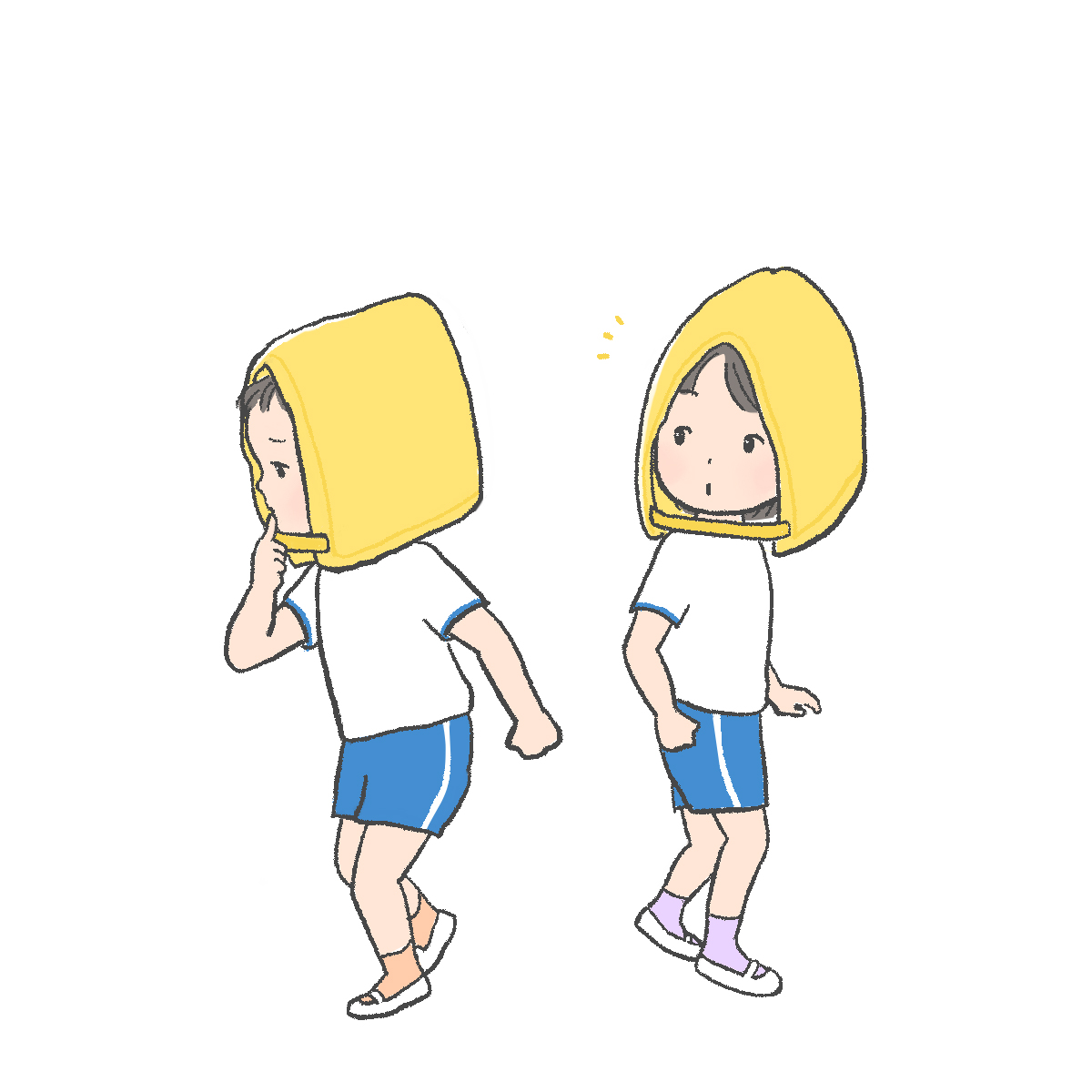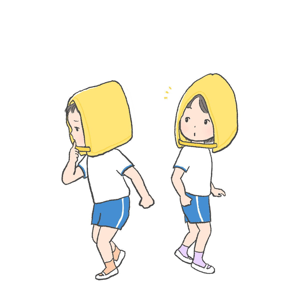 避難訓練のイラスト、4つめです。