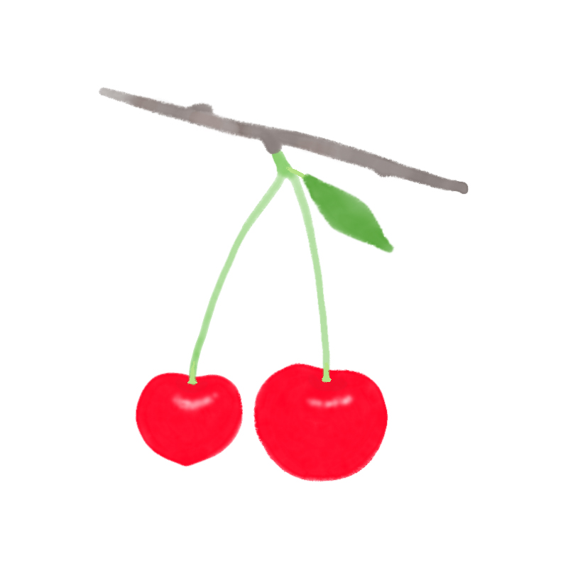 ちょっぴりハート型にも見えそうなさくらんぼのイラストです。