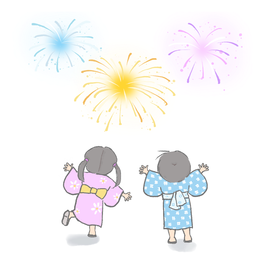 花火と子どものイラスト 夏 2023.06.112023.11.30 png クリックするとダウンロードできます 浴衣を着た子どもたちが打ち上げ花火を見て歓声をあげているイラストです。今回は背景が透明なpngファイルです。必要に応じて濃い色の背景と組み合わせてご利用いただきますようお願いします。 ※ファイルのサイズ:1000×1000px ご利用の際には、利用規約のご確認くださいませ。何かご不明な点がありましたら、お気軽にお問い合わせください。