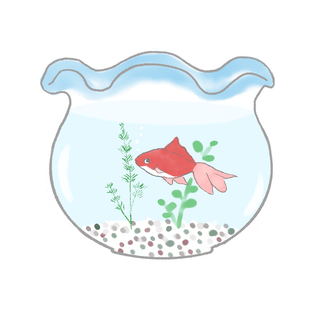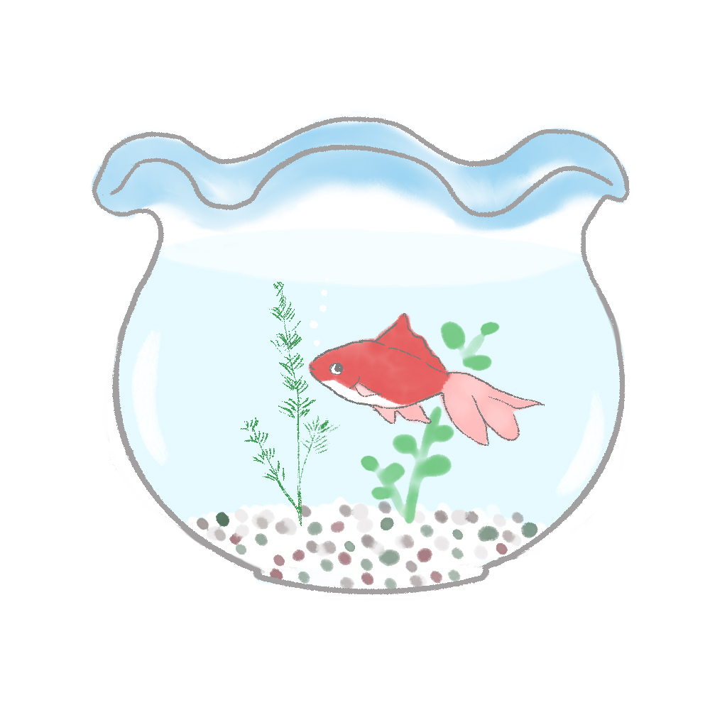 いきもの金魚鉢の中で泳ぐ金魚のイラストです。