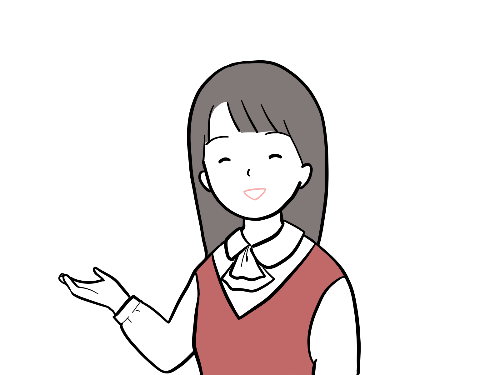 「こちらです」と笑顔で案内をする女性のイラストです。