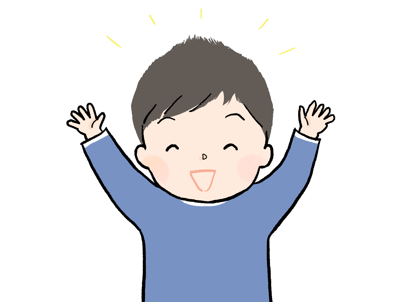 「やったー!」と言ってバンザイをする子どものイラストです。