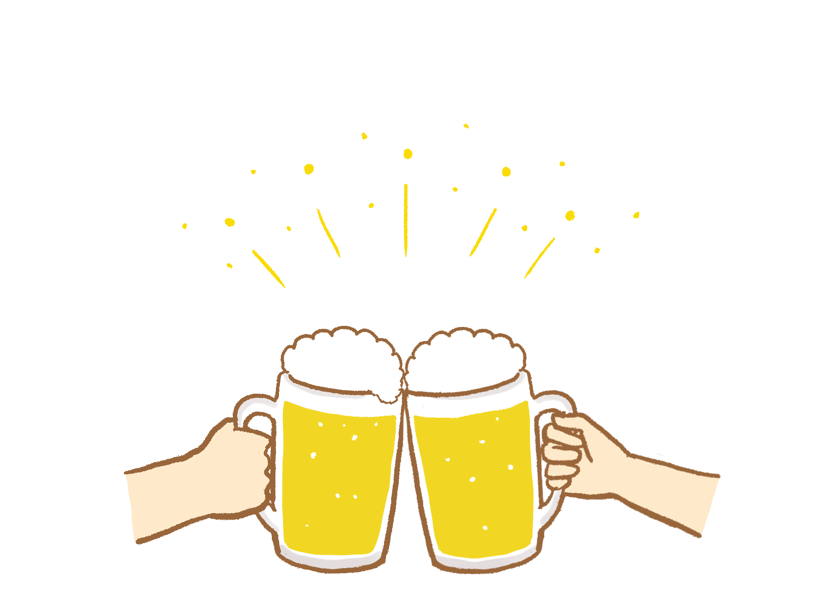 乾杯!のイラスト 動作 2023.01.022023.11.29 jpgを保存 pngを保存 ビールで乾杯をするイラストです。 さしえや 明るくてポップな感じを目指しました。1日も早く、「かんぱーい!」と大きな声で言い合えるようになるといいですね。