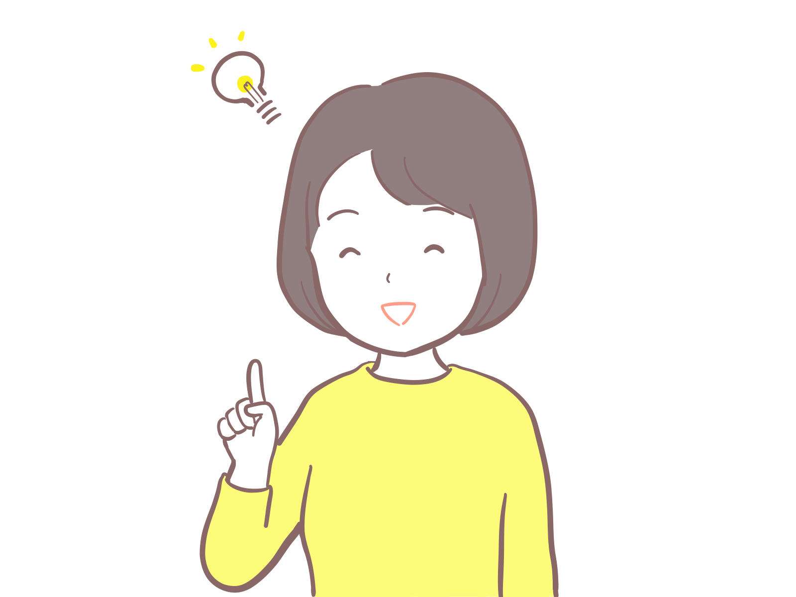 動作アイデアが浮かび、人差し指を立てている人(女性)のイラストです。