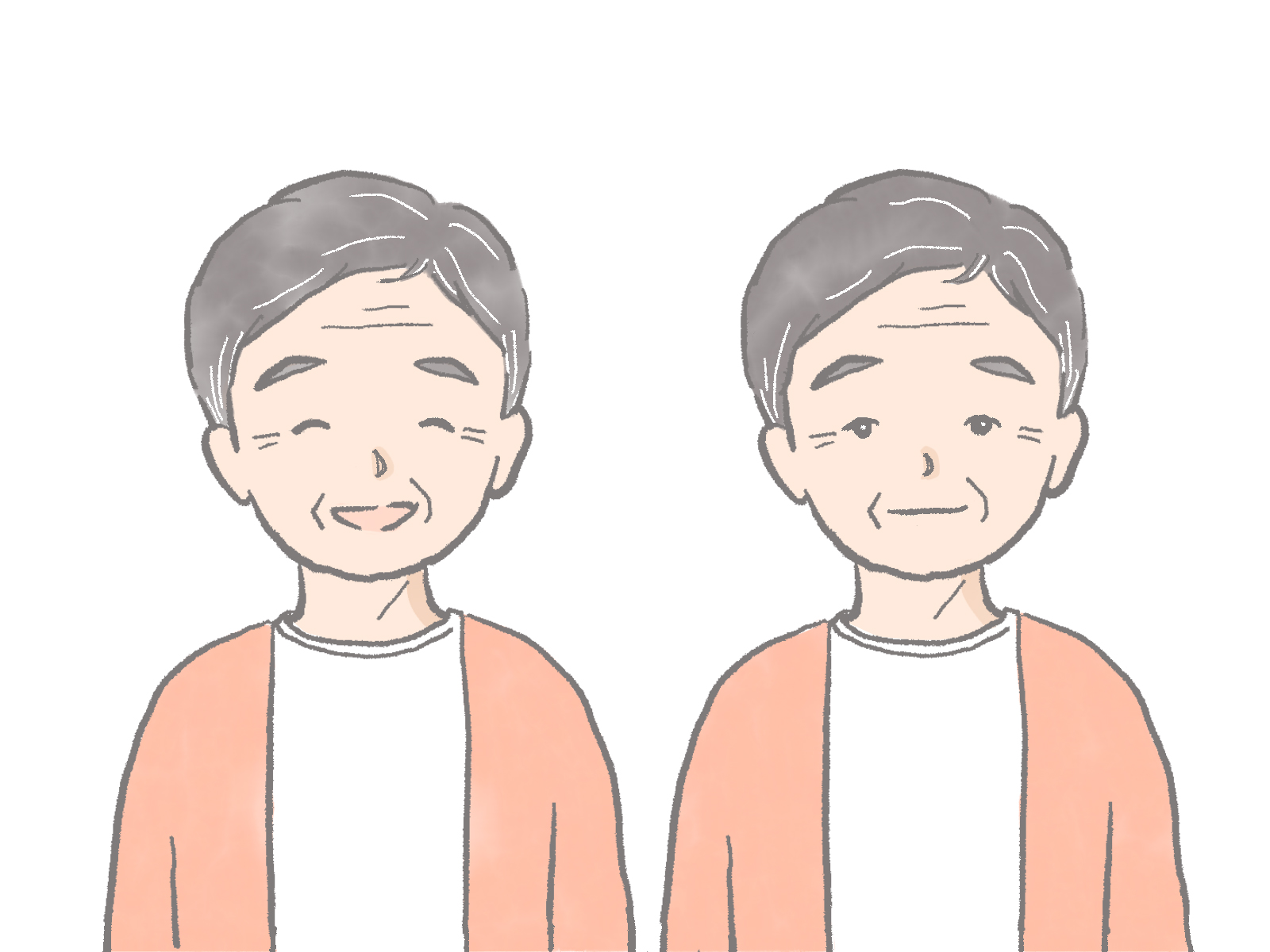 おじいさんの笑顔と真顔のイラストです。