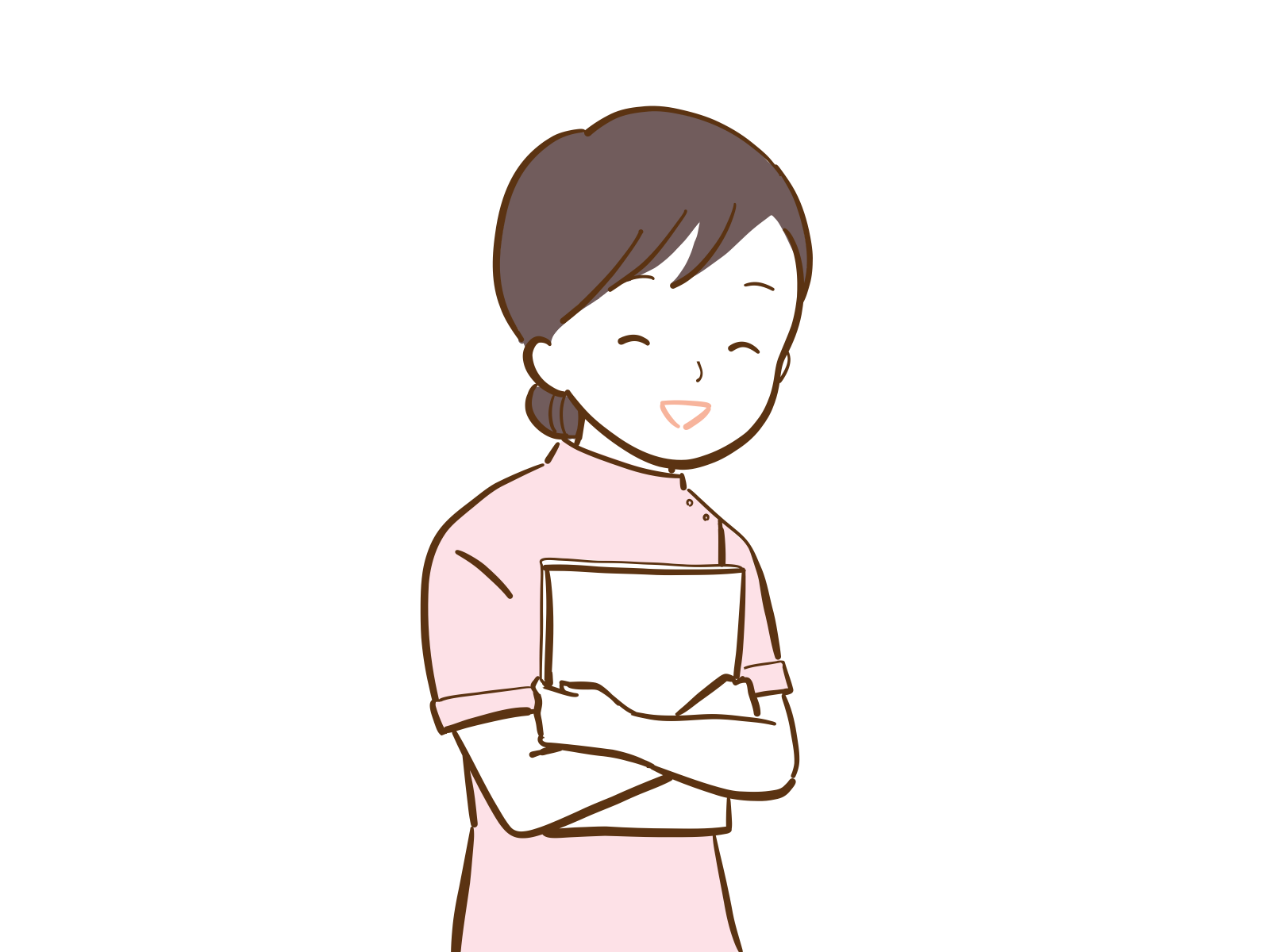 笑顔で患者さんに接する素敵な看護師さん(女性)のイラストです。