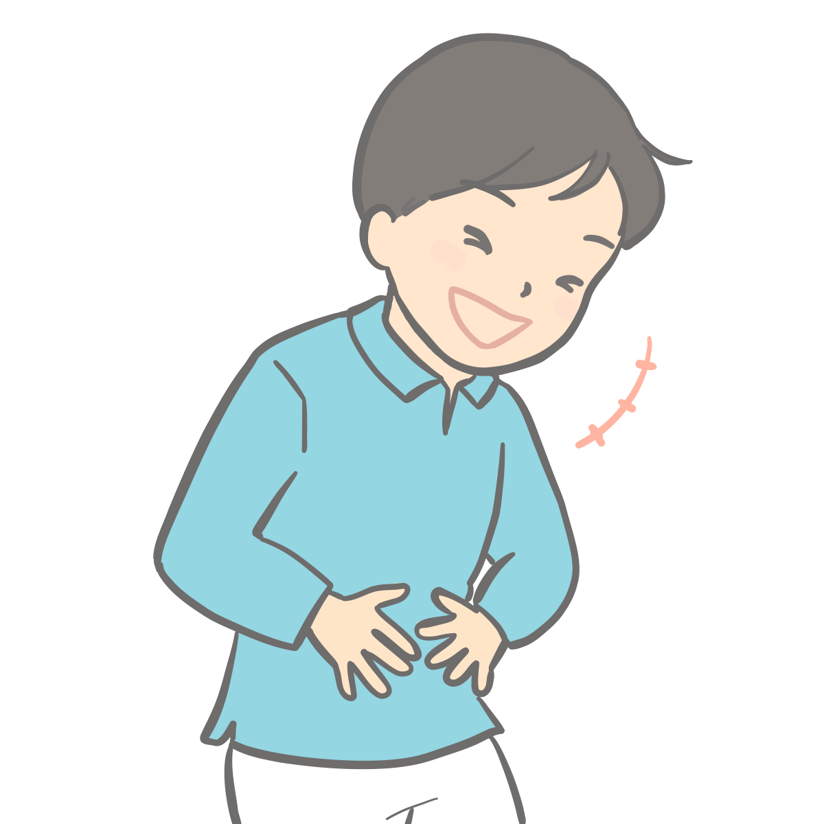 お腹を抱えて笑う人のイラスト 動作 2023.02.152023.11.29 pngを保存 お腹を抱え、大笑いする人のイラストです。 さしえや イラストに、笑う記号を使っています。記号を使うと表現を助けてくれますよね。笑う記号をとり、お腹のところに痛む記号を持ってきて口をへの字にするだけで腹痛のイラストにもなります。 記号を使ったイラスト 腰が痛む人(男性)のイラスト腰が痛み、つらそうにしている人のイラストです。 なぜ?と、やったね!と親指を立てるポーズのイラストなぜ?と、やったね!と親指を立てるポーズのイラスト